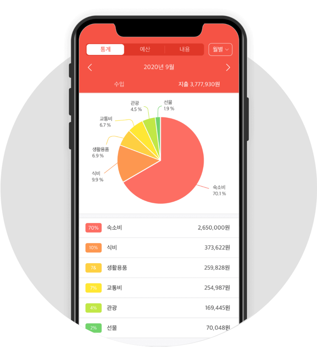 - 가계부 작성의 빈틈을 줄이고, 소비 패턴을 한눈에 분석할 수 있습니다.